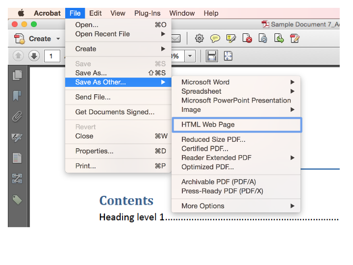 Exporting with Adobe Acrobat Pro “Save As Other” (HTML)