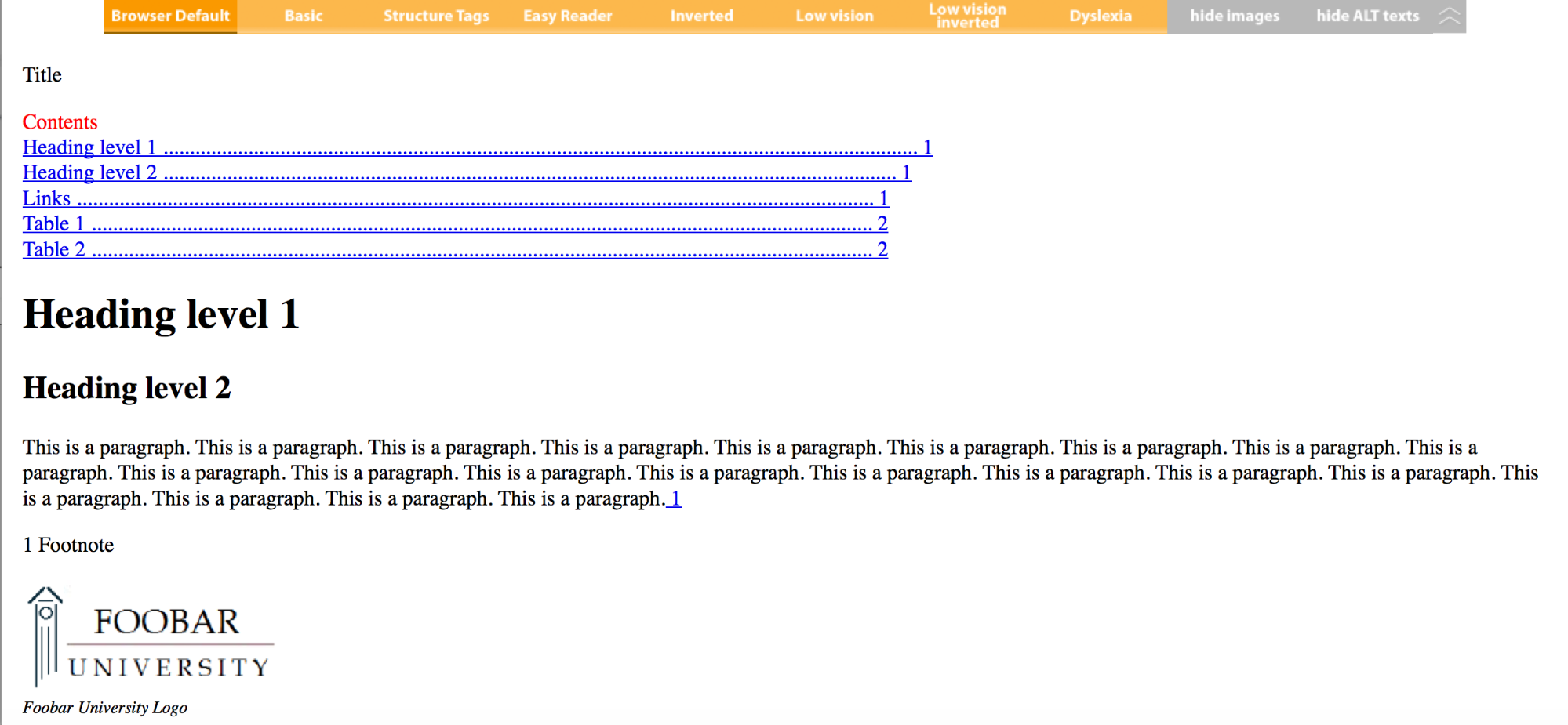 This process does not depend on (or benefit from) the file’s tag and order structure. Instead, the conversion makes a best guess at the order and structure of content based on the visual layout and appearance, organizing text from top-to-bottom and from left-to-right with basic headings. Some of the styling used in the document, such as alignment, text colour and fonts, is maintained as inline styles.