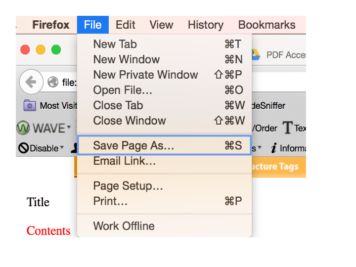When working with a document that is not properly tagged, which is either a flat scan, an untagged or partially tagged document, or a document that contains erroneous tags and incorrect reading order, you can export content to HTML using Adobe Acrobat Pro’s Save As Other > HTML Web Page command.